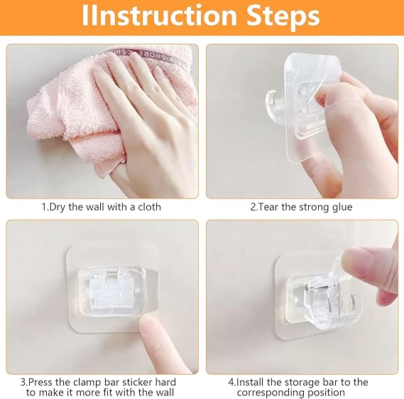 Make your home more organized and stylish with these self-adhesive rod clips and hooks. Designed for easy, drill-free installation, they let you hang curtain rods, towel rods, kitchen organizers, or bathroom accessories without damaging your walls.